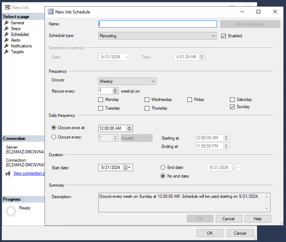 - In SQL Server Management Studio, expand SQL Server Agent and right-click Jobs. Select "New Job."